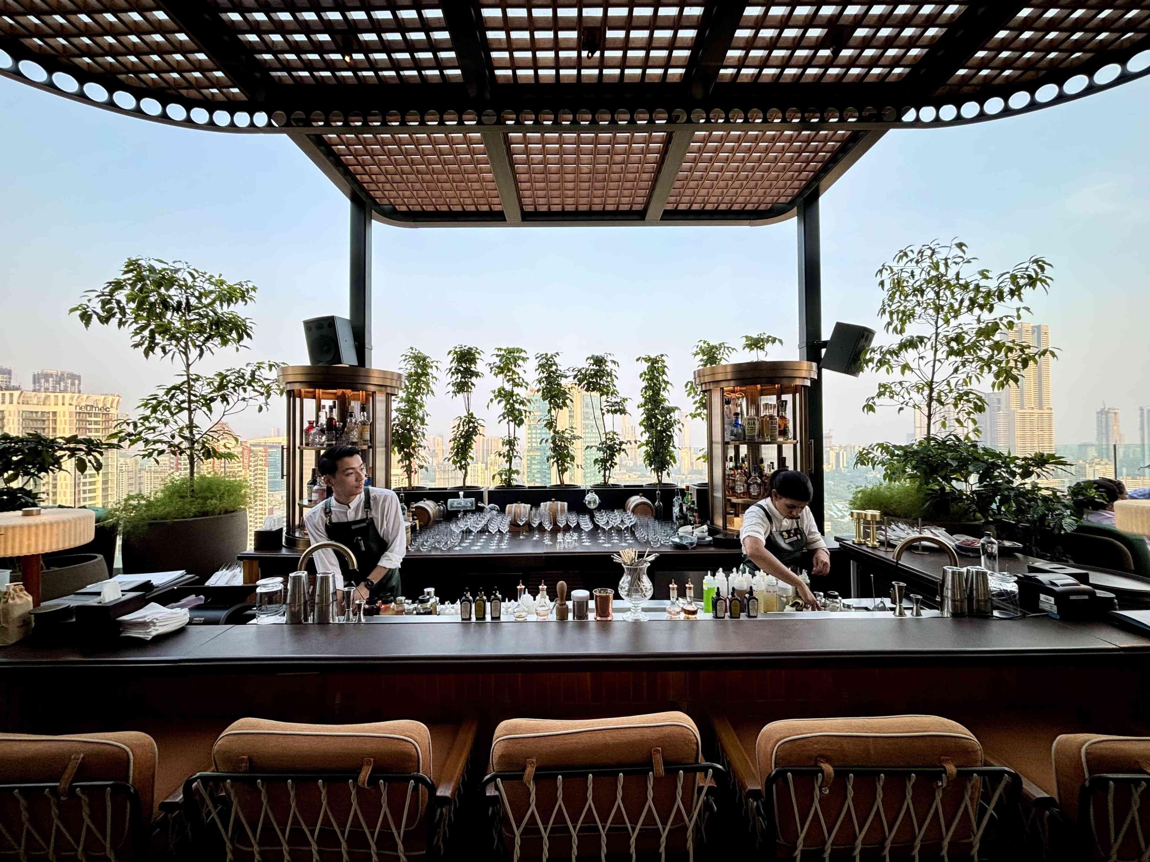 City-facing Gimlet Garden is an intimate sanctuary of lush greenery, warm lighting, and garden-inspired charm suspended above the urban sprawl. Here, cocktails become culinary explorations, drawing inspiration from ports and coastal traditions worldwide. From squid-infused gin paired with shiso leaf to tamarind brightened with green apple, or truffle layered with basil, each drink is layered, inventive, and full of personality. Signatures like the Oaxaca Me Margata, smoky with agave, cacao, and chilli, or the Siren’s Cove, a blend of coconut tequila, mulberry liqueur, sloe gin, and black tea, transport the palate while complementing the city’s skyline below.